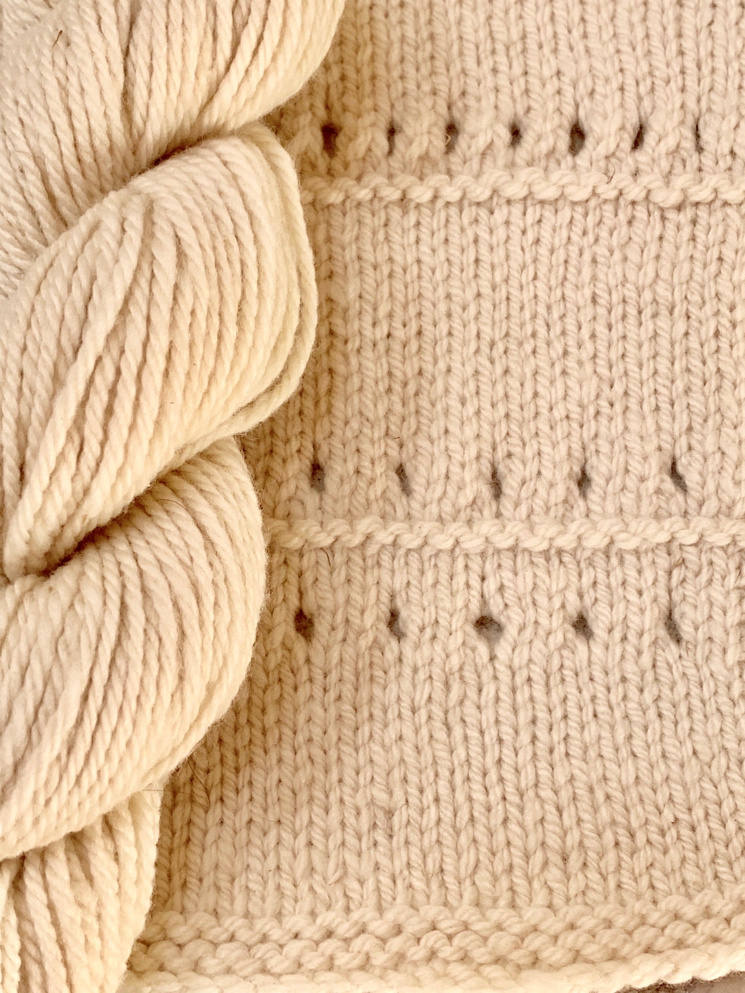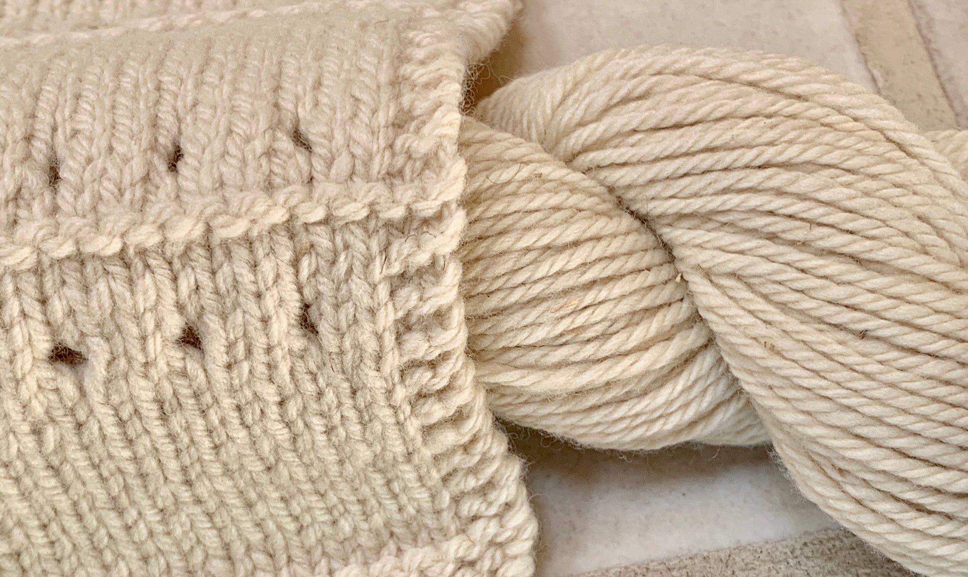 Our newest yarn and our only worsted weight. Ambrosia is from our cormo sheep and will redefine what ‘soft’ means in a 100% wool yarn. Because it’s micron count is 19 or less (see “Fiber Facts” page at Valhallayarns.com/fiber-facts for details) this wool feels like cashmere. Seriously. It’s bouncy, light and delicious as the mythical ambrosia of the gods should be. Soft and comfy against the neck or anywhere you worry wool might be scratchy. You can dye it or just enjoy it’s natural, creamy white color. (Who doesn’t look great in winter white?) Once you get a taste of Ambrosia, you’ll want seconds.