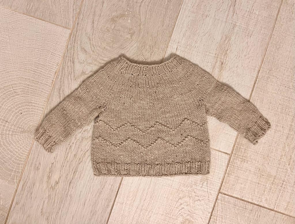 This pattern is designed for babies 3–9 months of age.